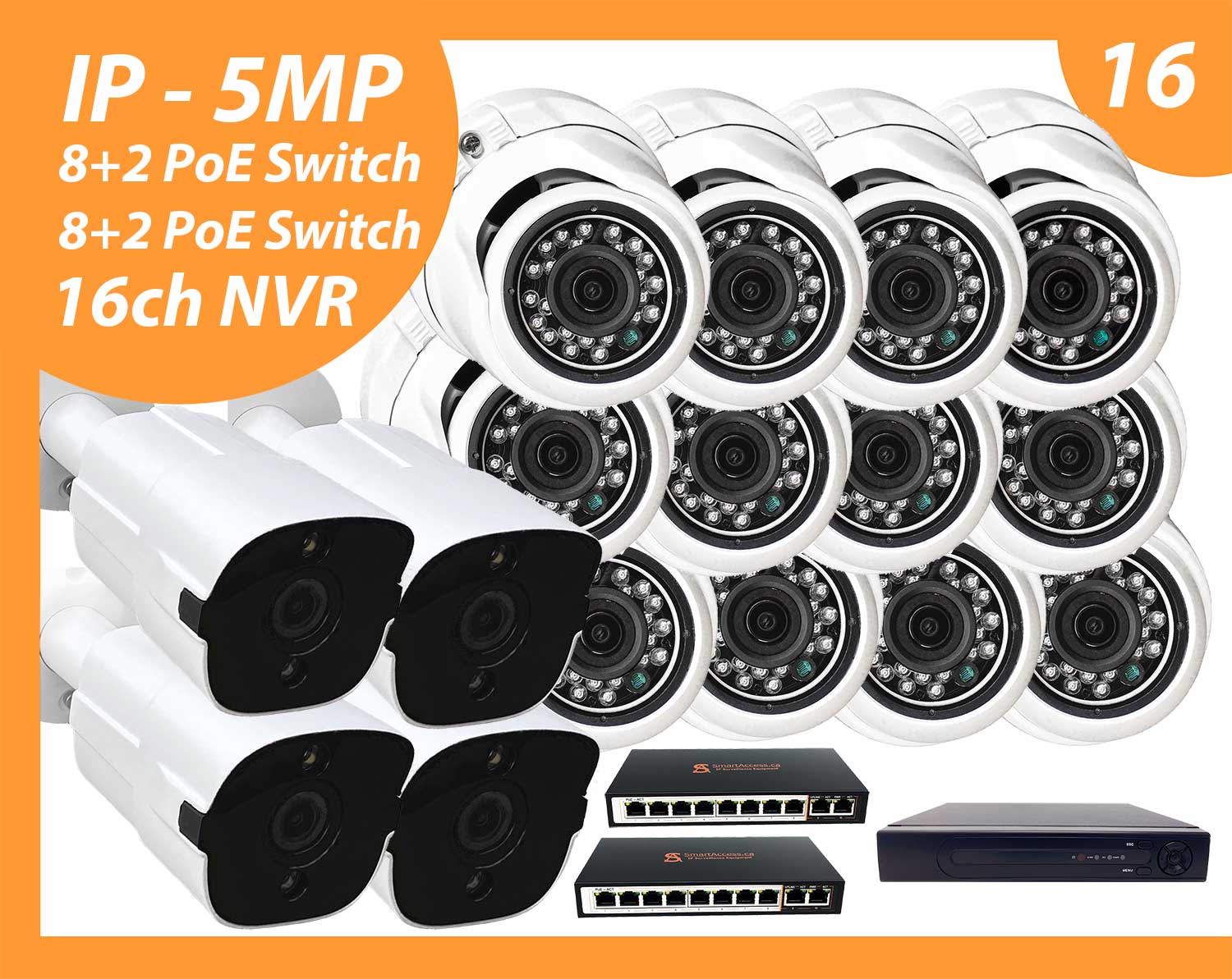 Surveillance package SA-IP16P-5MP-2 (12 Eyeball + 4 Bullet)