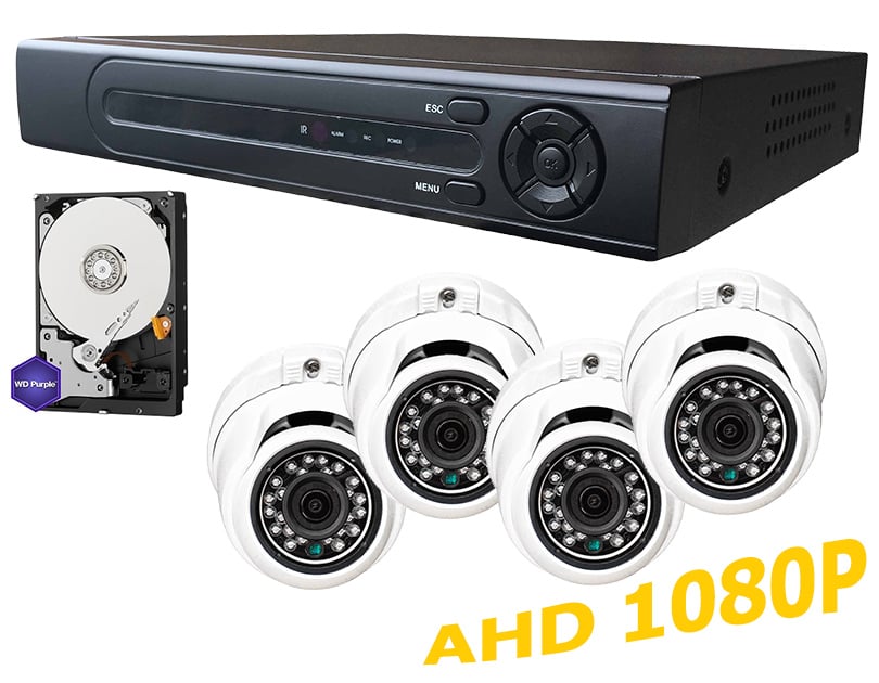 4 1080P AHD Cameras(2 MP), 4ch 5MP AHD DVR, 1TB WD Purple.