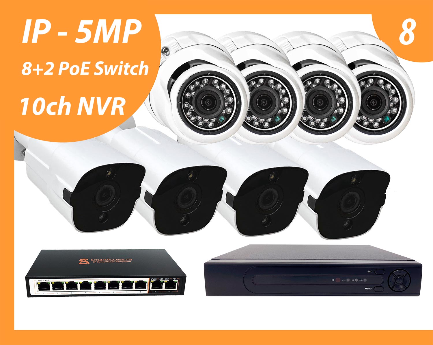 Surveillance package SA-IP8P-5MP-3 (4 Eyeball + 4 Bullet)