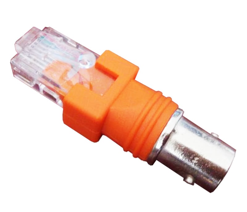 Connector SA-C1 using for converting Coaxial cable (BNC connector) to Network cable (RJ45). It