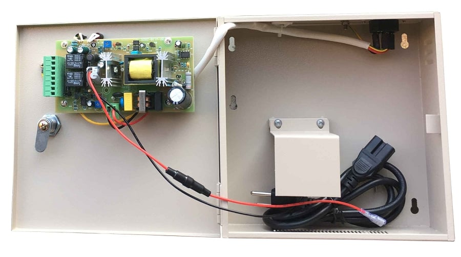 Power Supply Box with UPS SA-PE12V5A-UPS is un-interruptible power supply, when the AC is supplying to the Power Supply Box, then the device provided provide power to connected devices, when power off, the Power box SA-PE12V5A-UPS is supplying power by the battery, when the battery voltage dropped to 10.5V, it will disconnect the load on their own, It will not supply the power for load to protect the battery life, when the AC back to normal, than the system will automatically reset to prepare for the next blackout, this power supply has over-current, over voltage and short circuit protection, wide input voltage, output voltage is constant and so on.